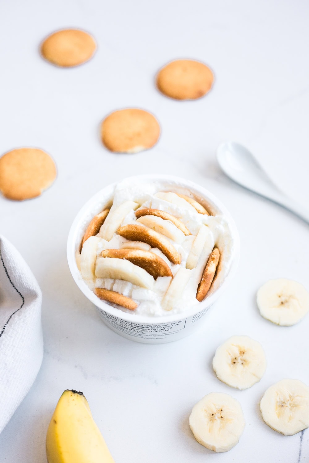 - Insert Nilla wafers and sliced bananas into the yogurt. Refrigerate to allow the cookies to absorb some of the moisture for at least 4 hours (this yields the best cheesecake-like texture).