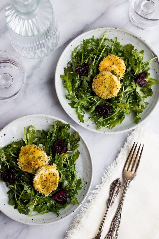 - Arugula Salad With Roasted Beets And Fried Goat Cheese Medallions