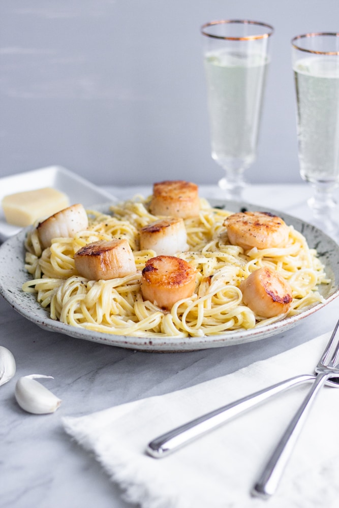 - Linguine With Champagne Cream Sauce And Perfectly Seared Scallops